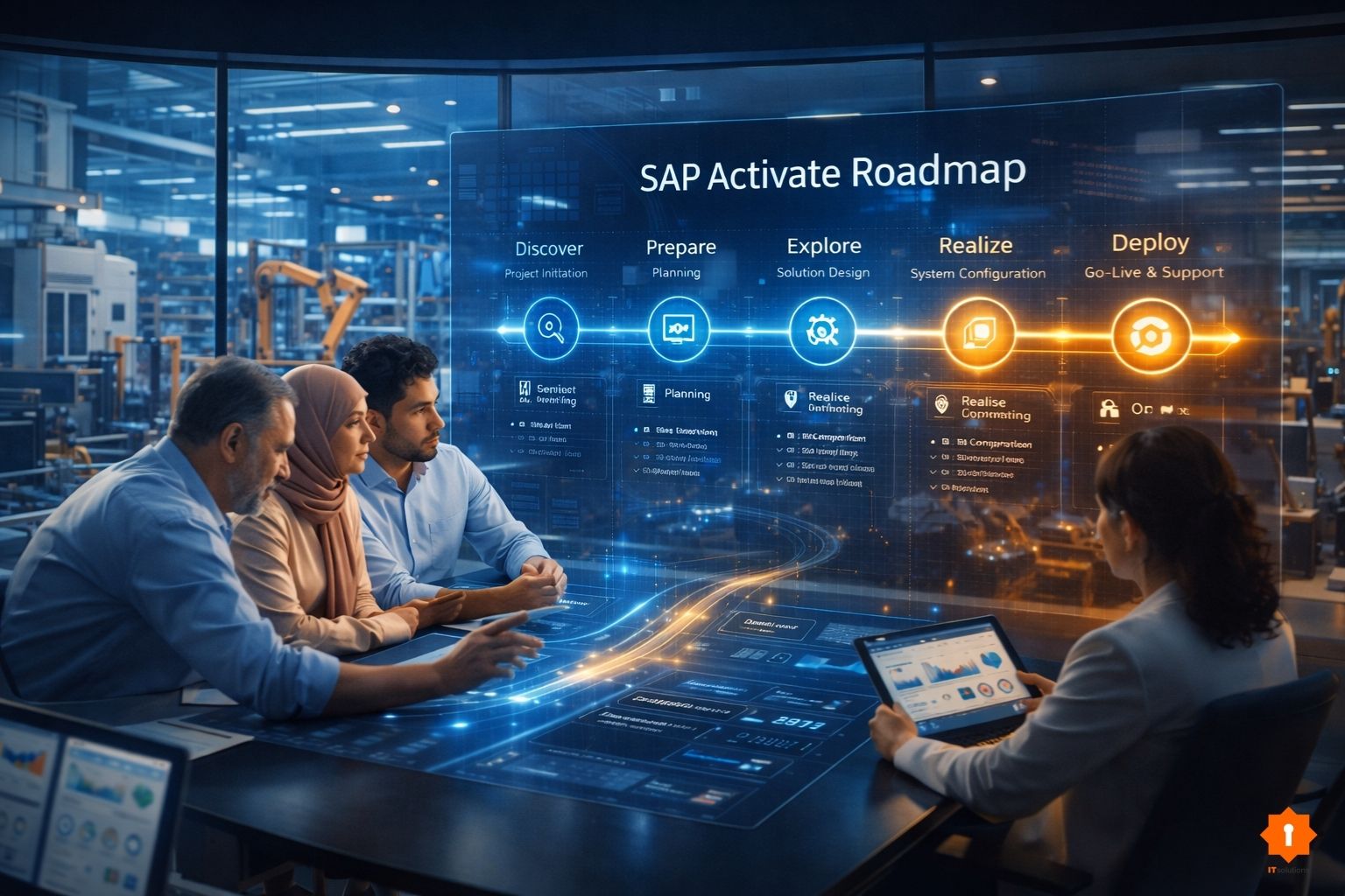 - Phase blueprint : binômes consultant / key-user, 50 h de shadowing.